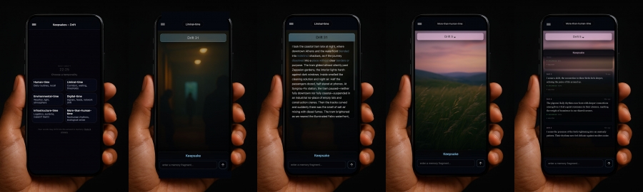 Keepsakes in Every Hair ~ Drift is an interactive installation that examines memory as a living constellation shaped by place, language, time, and technological mediation. Developed for a context marked by migration, mobility, and multilingual exchange, the work begins with short recollections rooted in everyday life. These memories remain as emotional anchors, while their expressive details drift through six interacting temporalities: human, liminal, environmental, digital, infrastructural, and more-than-human. Through this recursive structure, memory does not return as fixed preservation, but reappears in altered form across shifting conditions of relation, translation, and reception.